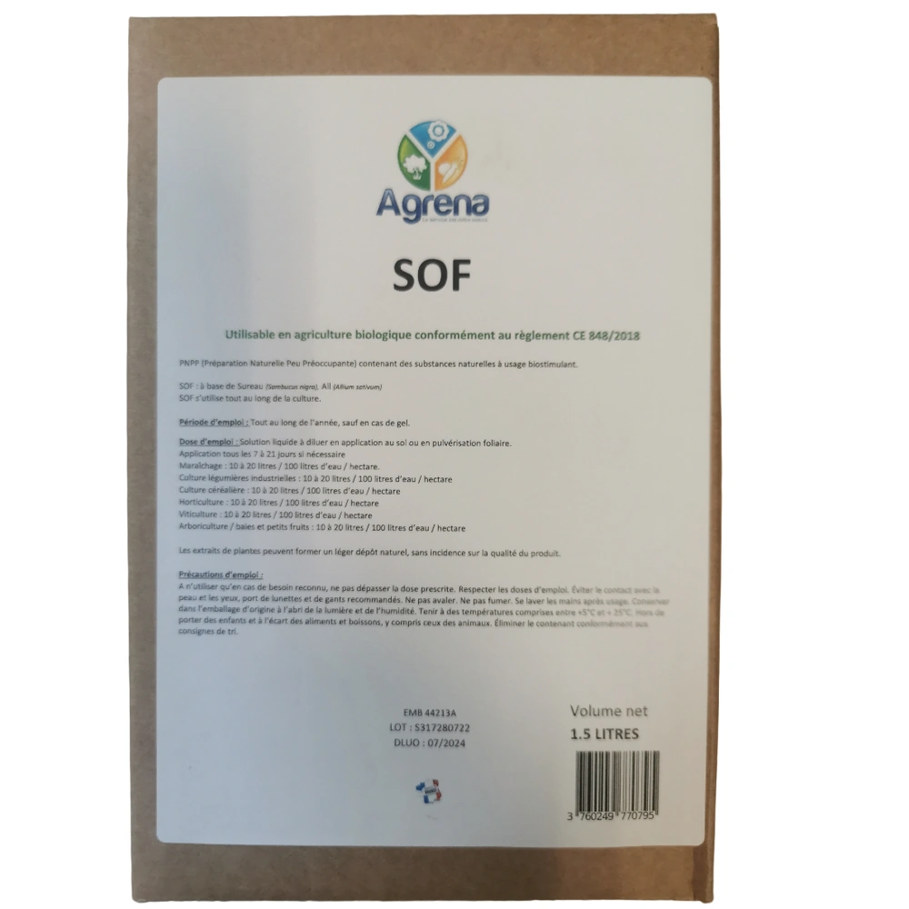 Le COLEOGREEN est une solution de biocontrôle innovante conçue pour la protection des cultures contre les insectes ravageurs, particulièrement les coléoptères (altises, doryphores, charançons, etc.). Classé comme PNPP (Préparation Naturelle de Peu de Préoccupation), ce produit s'inscrit parfaitement dans une démarche d'agriculture durable et de gestion intégrée des cultures. Points Forts & Bénéfices B2B Action Naturelle : Formulé à base d'extraits végétaux, il agit par effet barrière et répulsif, limitant les pontes et les dégâts de nutrition des insectes. Conformité Environnementale : Produit utilisable en Agriculture Biologique (UAB), idéal pour répondre aux cahiers des charges exigeants et aux démarches de réduction des intrants chimiques. Sécurité d'Utilisation : En tant que PNPP, il présente un profil toxicologique favorable pour l'utilisateur et l'environnement, avec des délais de rentrée (DRE) et des délais avant récolte (DAR) optimisés. Format Professionnel : Conditionnement en bidon de 1,5L, adapté aux besoins des exploitations agricoles, des paysagistes et des gestionnaires d'espaces verts. Caractéristiques Techniques Type de produit : Bio-insecticide / Répulsif d'origine naturelle. Catégorie : Soin des cultures (SOINCULT). Cibles principales : Coléoptères phytophages (Altises du colza/chou, doryphores, etc.). Conditionnement : Bidon de 1,5 Litre. Usage : Pulvérisation foliaire après dilution.