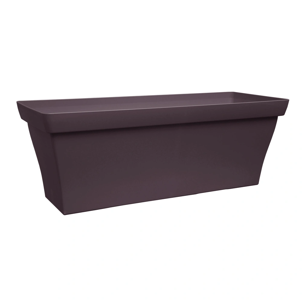 Bac rectangulaire spacieux en plastique robuste couleur taupe. Conçu pour des plantations élégantes dans des espaces modernes.