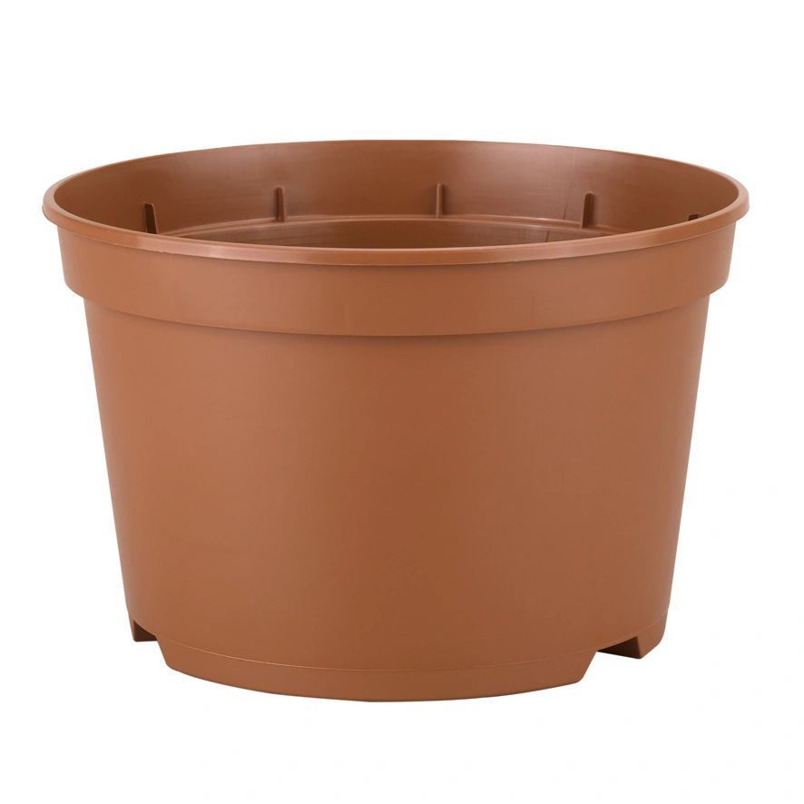 Conteneur horticole bas SB 4 L en terre cuite. Ce pot injecté est parfait pour la culture et est livré en filet de 90 pièces. Dimensions approximatives : 22 x 14 cm.