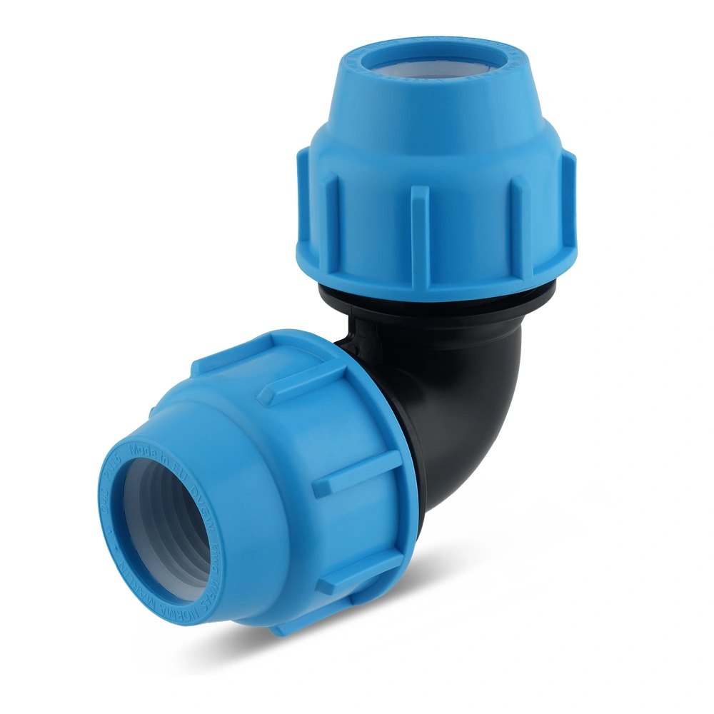 Coude MARLIN compression égal 25x25. Indispensable pour l'irrigation et l'eau potable. Polypropylène haute qualité PN16, résistant aux chocs.