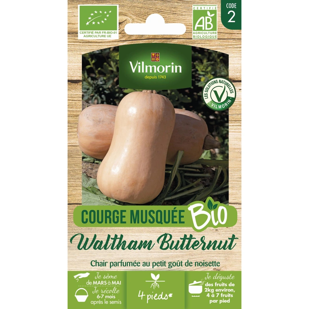 Variété : Waltham Butternut (Semences certifiées Bio).