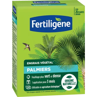 Composition : Engrais organique NPK 5-3-7. Enrichi en magnésium pour prévenir le jaunissement des palmes.