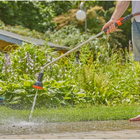 Spécialement conçu pour l’arrosage avec de longs tuyaux ou des pompes, ce fusil-arrosoir offre trois types de jets : pluie fine, concentré et nébulisant. Poignée ergonomique antidérapante, bague de protection en caoutchouc, compatible système de raccords GARDENA. Idéal pour tuyaux 3/4pouce.