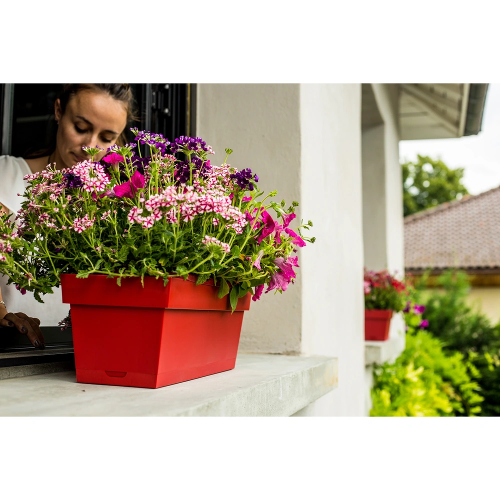 Jardinière TOSCANE 50 cm avec plateau intégré, gris anthracite. Format pratique balcon/terrasse, plateau pour récupérer l’eau, bac robuste pour intérieur/extérieur. Idéale fleurs et aromatiques, entretien simple.