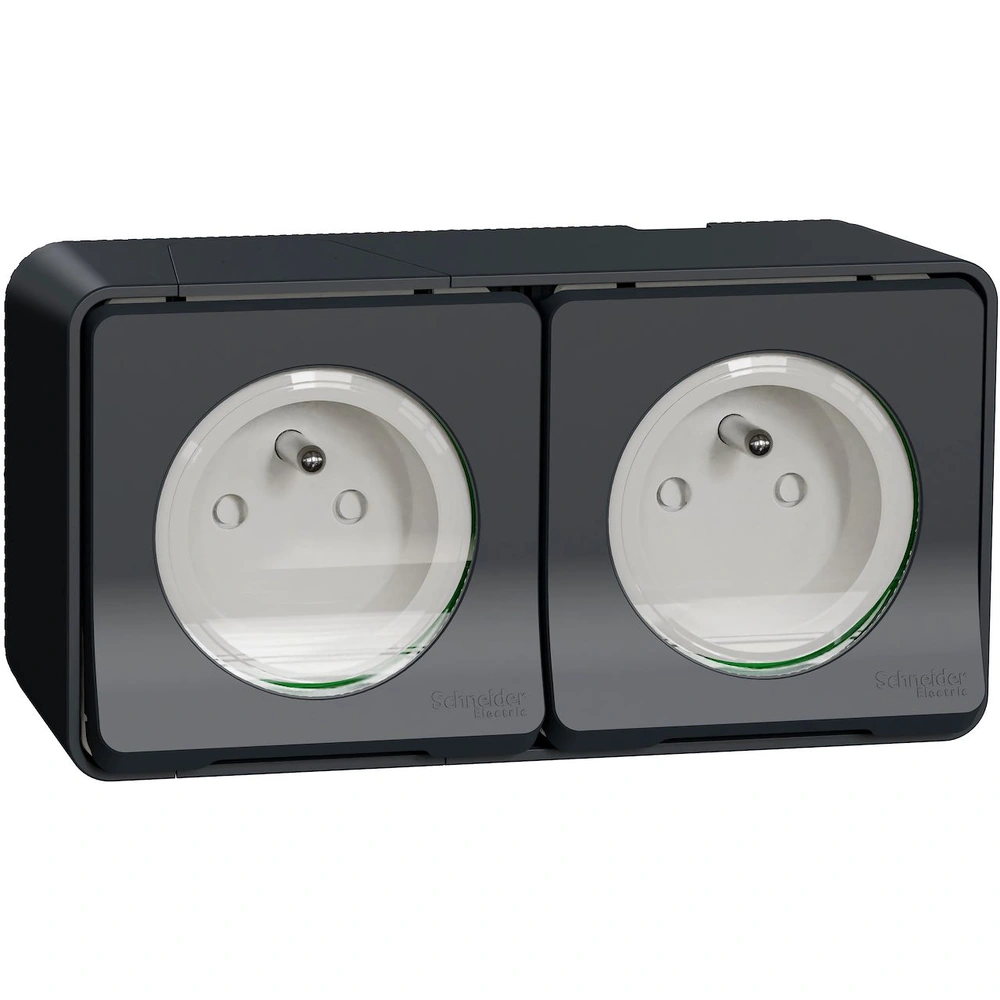 Mureva Styl - Double prise 2P+T précâb - saillie - IP55 - IK08 - Gris - L'unité