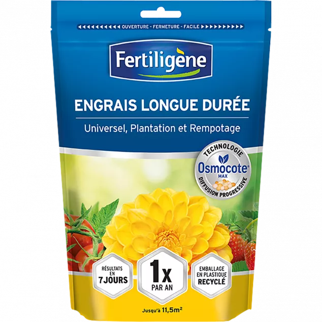 L’engrais Osmocote® LD Universel de Fertiligène est une solution de nutrition végétale haute performance, conçue pour les jardiniers exigeants. Grâce à sa technologie de libération contrôlée, il assure une croissance vigoureuse et une floraison abondante pour tous types de plantes (fleurs, arbustes, fruits, légumes), que ce soit en pleine terre ou en pot.