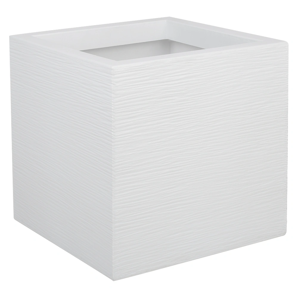 Pot carré GRAPHIT'UP 21 L, dim. 29,5 x 29,5 x 29,5 cm, blanc cérusé. Décor graphique moderne, pot robuste pour intérieur/extérieur, idéal plantes vertes, fleurs et petites plantations structurées.