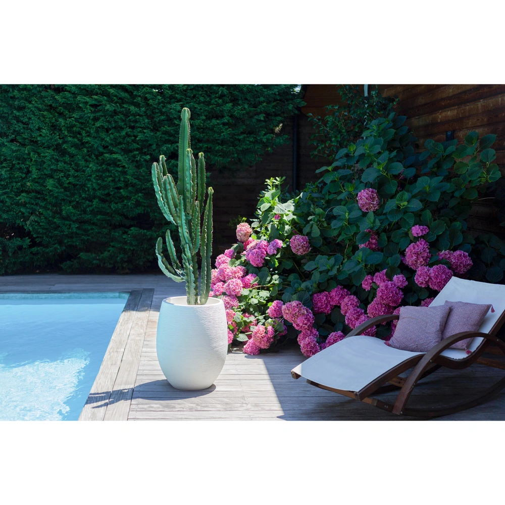 Grâce à son volume de 53L, ce pot est parfaitement adapté pour des arbustes persistants, des plantes ornementales de grande taille (type Buis, Laurier-rose) ou des compositions florales volumineuses nécessitant une stabilité et une profondeur de terreau importantes.