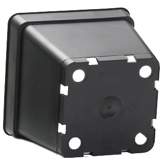 Pot carré en plastique noir, idéal pour les semis et le rempotage. Dimensions : 13 x 13 x 12,5 cm. Il est doté du système CS (Côtés et Fond ajourés) pour un drainage optimal, référence 5170. Vendu en filet de 100 pots.