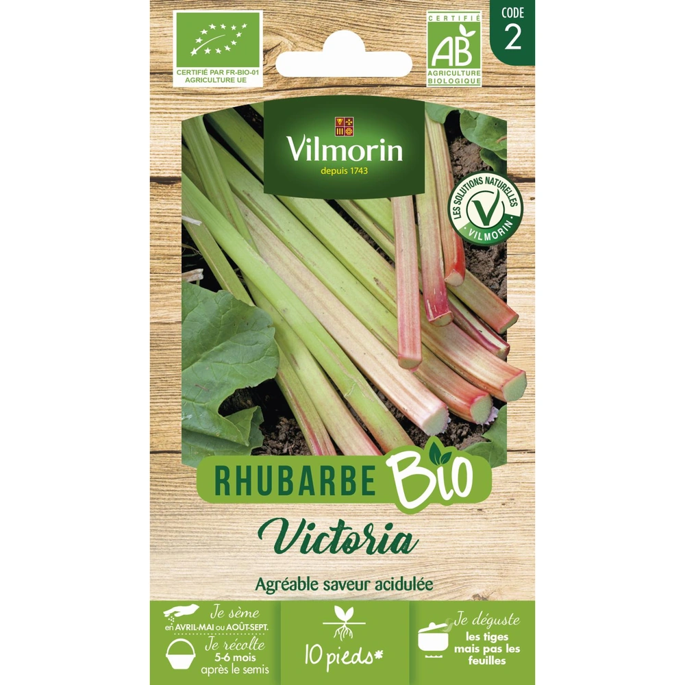 La Rhubarbe Victoria BIO (Rheum rhabarbarum) est une variété ancienne et vigoureuse, particulièrement appréciée pour ses pétioles épais, tendres et charnus. Cette plante vivace potagère offre une saveur acidulée caractéristique, idéale pour la confection de tartes, compotes et confitures. Issue de l'agriculture biologique, elle garantit une culture respectueuse de l'environnement et des cycles naturels.