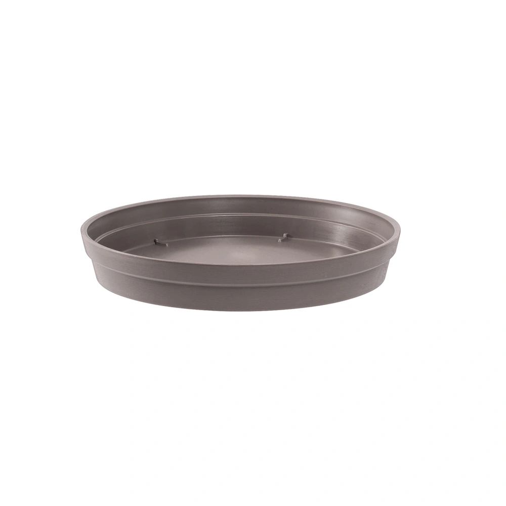 Soucoupe TOSCANE Ø 22,5 cm (pour pot Ø 30), taupe. Récupération d’eau d’arrosage, protection des surfaces, plastique robuste.