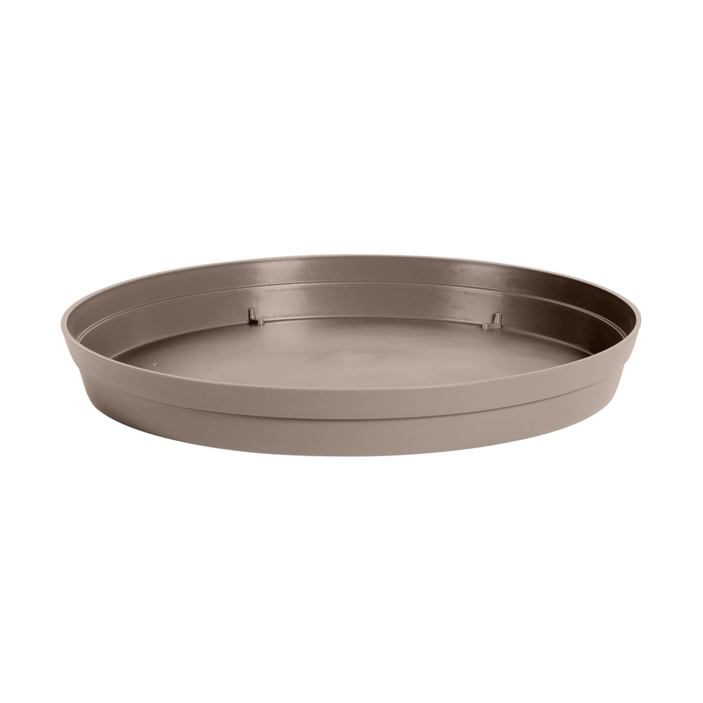 Soucoupe TOSCANE Ø 34,5 cm, taupe. Grande soucoupe ronde : récupération d’eau d’arrosage, protection des surfaces, entretien simple.