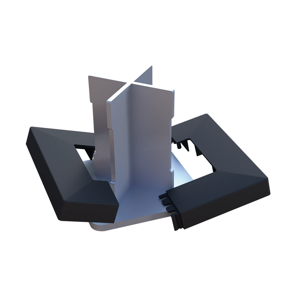 Lot 2 caches esthétiques Gris pour bases BASFIX Mosaic sols durs, aluminium thermolaqué anti-UV/pluie. Protection vis/rainures, finition intégrée poteaux ALUPOST, discrétion parfaite clôtures paysagères pros.
