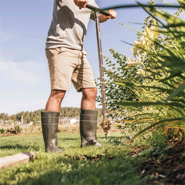 La Tarière Fiskars QuickDrill™ est un outil professionnel conçu pour percer des trous nets dans le sol sans effort excessif. Contrairement aux tarières traditionnelles à vis sans fin, son design innovant intègre deux lames en acier au bore trempé à l'angle optimisé, permettant de pénétrer même les sols les plus fermes en évitant les blocages dus aux racines ou aux petites pierres.