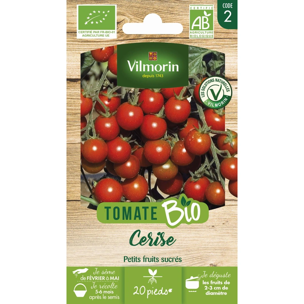 La Tomate Cerise Bio (Solanum lycopersicum) proposée par Vilmorin est une variété productive et vigoureuse, spécifiquement sélectionnée pour la qualité gustative de ses fruits. Issue de l'agriculture biologique, cette variété produit de nombreuses grappes de petits fruits rouges, ronds et brillants, reconnus pour leur saveur sucrée et leur chair juteuse. Elle est idéale pour les apéritifs, les salades estivales ou comme encas sain directement cueilli au potager.
