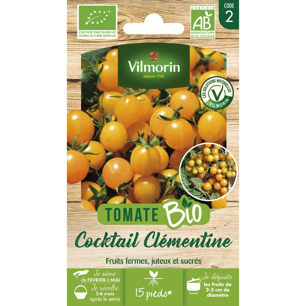 La Tomate Clémentine (Solanum lycopersicum) est une variété de type "cocktail" particulièrement appréciée pour sa productivité exceptionnelle et la qualité gustative de ses fruits. Issue de l'agriculture biologique, cette variété vigoureuse produit de longues grappes chargées de petites tomates rondes d'un jaune orangé éclatant, rappelant la couleur d'une clémentine.