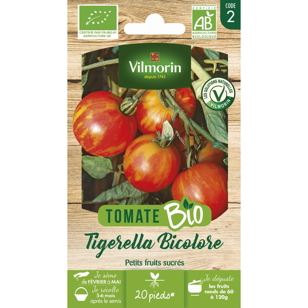 La Tomate Tigerella Bicolore (Solanum lycopersicum) est une variété ancienne remarquable, prisée pour son esthétique originale et sa précocité. Ses fruits ronds de taille moyenne se distinguent par une robe bicolore rouge vive, élégamment striée d'orange ou de jaune. Issue de l'agriculture biologique, cette variété productive offre une chair juteuse et douce, garantissant une excellente qualité gustative pour toutes vos préparations estivales.