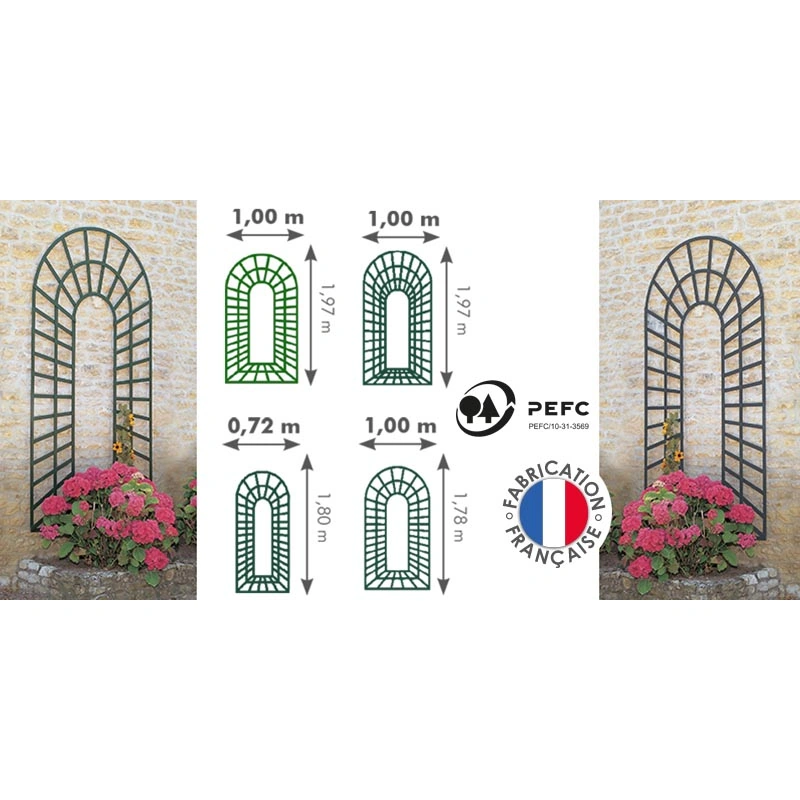 Treillage rectangulaire Vert 1,00 x 1,97 m. Maille carrée serrée de 6 cm. Parfait pour créer un écran végétal ou supporter des clématites.